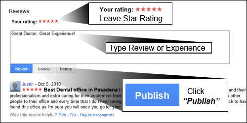 5. Once you have entered your pin code, your Google Account set-up will be complete and you will be able to leave a review William Ralstin, D.D.S. Google Places page. Please click the “Review us on Google” button at the top of this page.