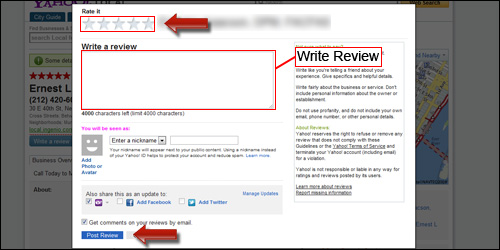 1. Click the “Review us on Yahoo” button at the top of this page.